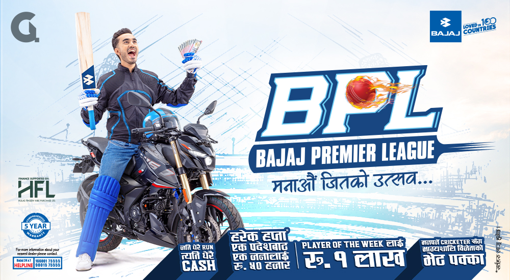 सबै नेपालीका लागि अब मोटरसाइकल भनेको केवल यातायातको साधन मात्र नभई जीवनशैली र पहिचानको प्रतीक बनिसकेको छ । त्यसैले नेपाली उपभोक्तालाई अझ नजिक ल्याउने प्रयास स्वरूप कम्पनीले यो रोमाञ्चक क्याम्पेन ‘बजाज प्रिमियर लिग (BPL) सुरु गरेको हो ।